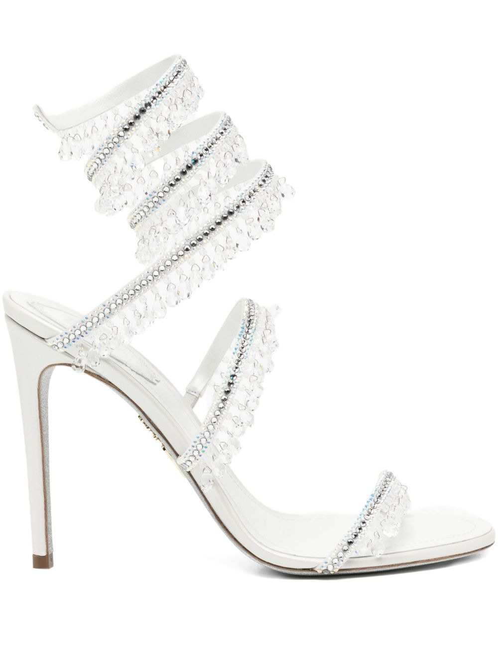 105mm Chandelier sandals Highlights - White - Crystal embellishment - Round open toe - Branded footbed Made in Italy Composition Lining: Leather 100% Sole: glitter 100% Outer: Leather 100% SIZE & FIT Measurement HEEL 3.93 in(10 cm)