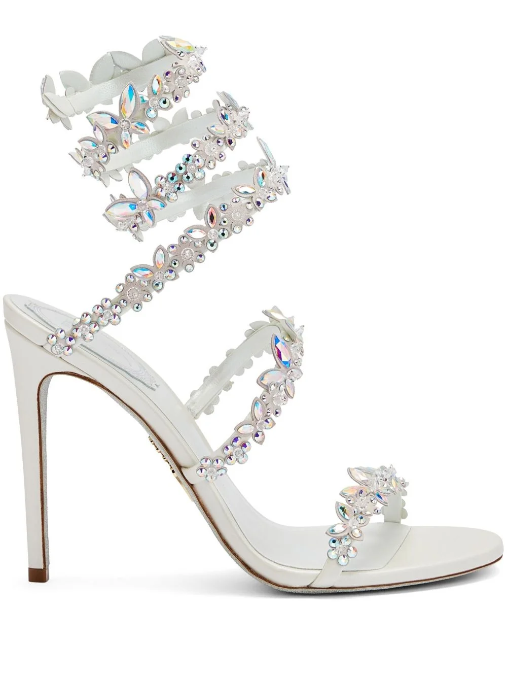 105mm Cleo sandals Highlights - White Made in Italy Composition Outer: Satin 100%, Rhinestone 100% Lining: Calf Leather 100%, Satin 100% Sole: Calf Leather 100%, Glitter 100% SIZE & FIT Measurement HEEL 4.13 in(10.5 cm)