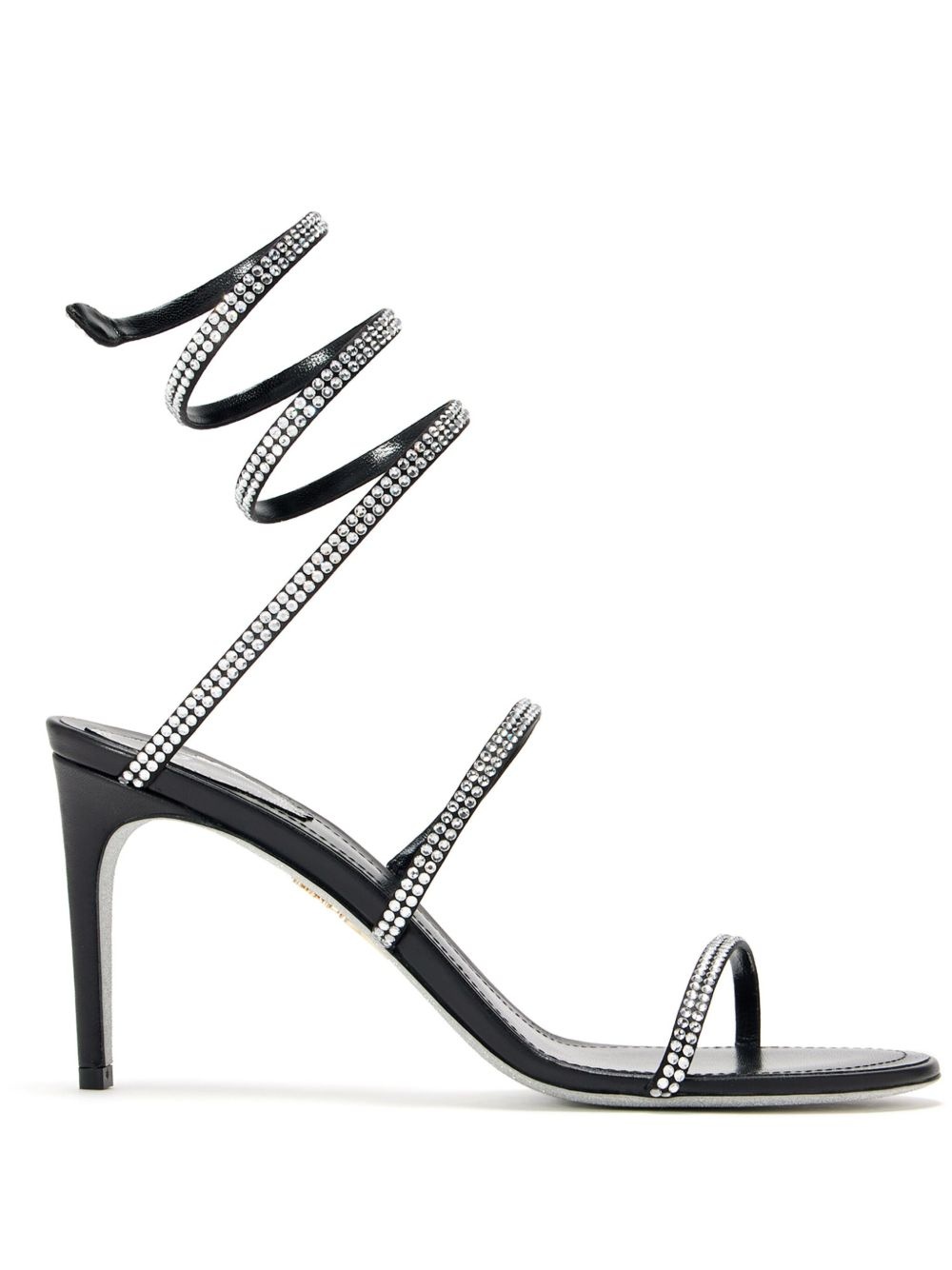 105mm crystal-embellished sandals Highlights - Black - Ankle strap - Round open toe - Stiletto heel - Rhinestone embellishment Made in Italy Composition Sole: Glitter 100% Lining: Calf Leather 100% Outer: Calf Leather 100%