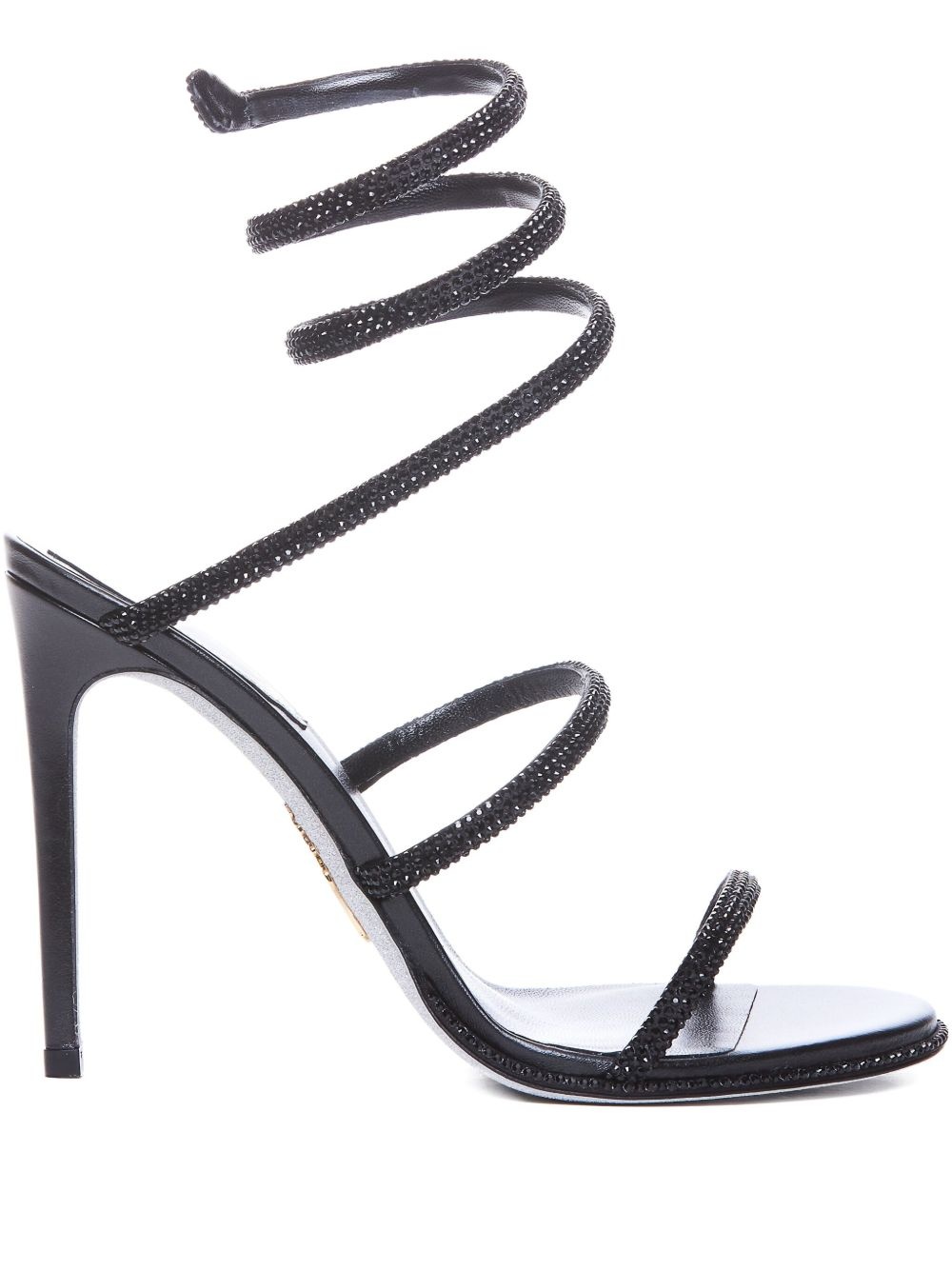 105mm leather sandals Highlights - Black - Slip-on style - High stiletto heel - Round open toe - Rhinestone embellishment Made in Italy Composition Outer: Leather 100%, Strass 100% Sole: Leather 100% Lining: Calf Leather 100% SIZE & FIT Measurement HEEL 4.13 in(10.5 cm)