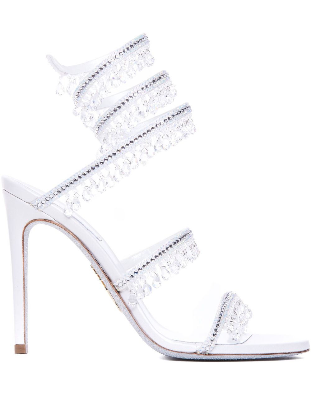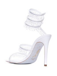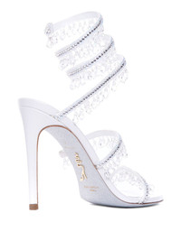 105mm leather sandals Highlights - White - Slip-on style - Rhinestone embellishment - Round open toe - Stiletto heel Made in Italy Composition Outer: Fabric 100%, glass 100% Sole: Calf Leather 100% Lining: Calf Leather 100%