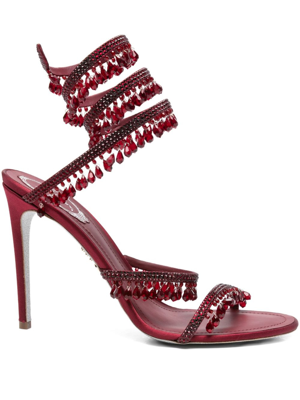 110mm embellished satin heeled sandals Highlights - Burgundy red - Calf leather - Multiple embellishments - Spiral ankle wrap - Stiletto heel - Open toe Made in Italy Composition Lining: Calf Leather 100% Sole: Glitter 100% Outer: glass 100%, Calf Leather 100% SIZE & FIT Measurement HEEL 4.33 in(11 cm)