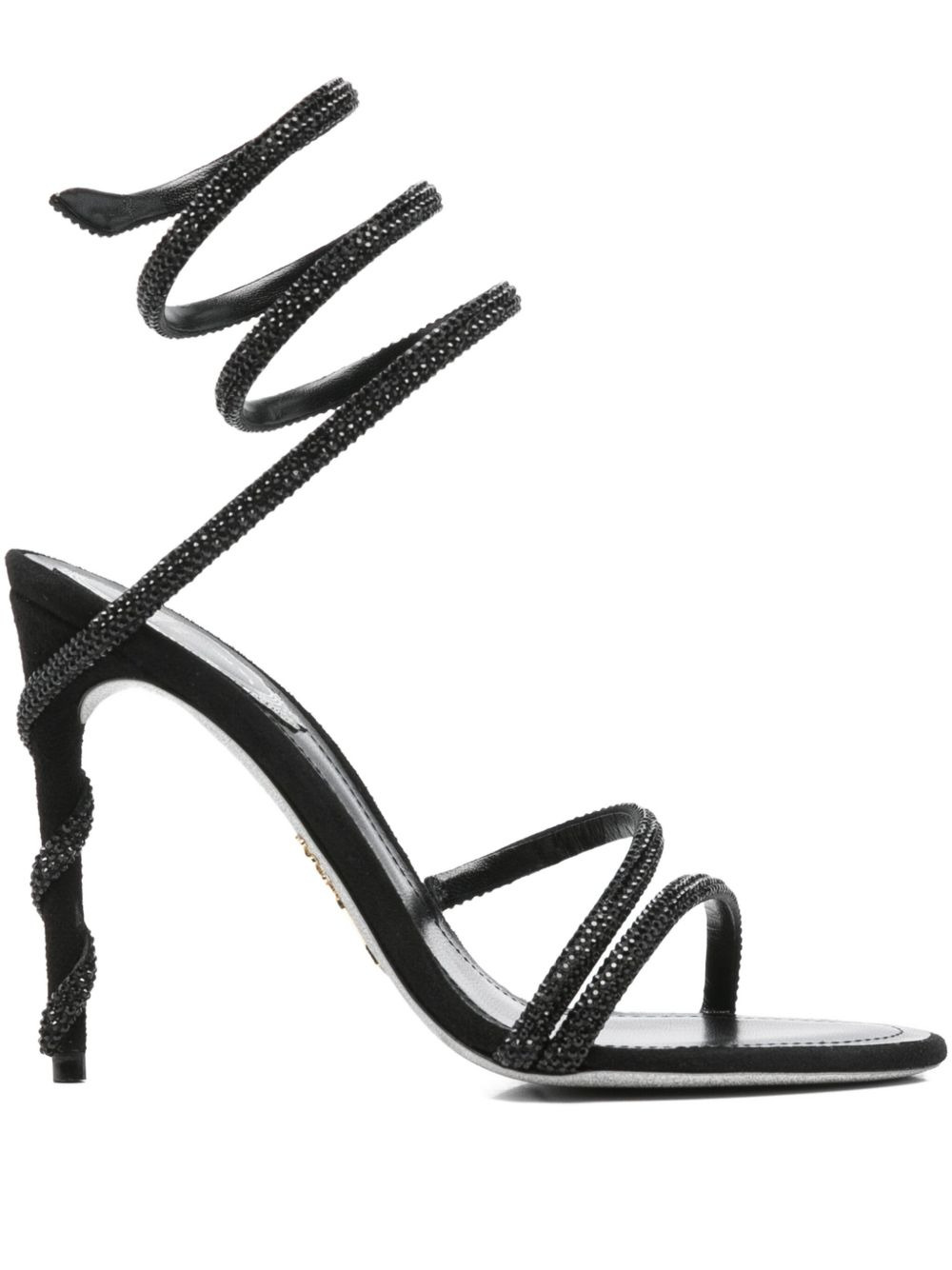 110mm Margot sandals Highlights - Black - Spiral ankle strap - Open toe - Stiletto heel - Crystal embellishment Made in Italy Composition Outer: Nappa Leather 100%, Satin 100% Sole: Leather 100%, Rubber 100% Lining: Leather 100% SIZE & FIT Measurement HEEL 1.85 in(4.7 cm)