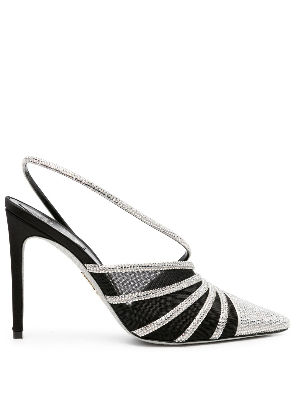 115mm slingback mesh crystal pumps Highlights - Jet black/silver-tone - Calf leather - Mesh panelling - Crystal embellishment - Pointed toe - Elasticated slingback strap - Branded leather insole - Leather sole - 115mm high heel Made in Italy Composition Lining: Calf Leather 100% Outer: Fabric 100% Sole: Calf Leather 100% SIZE & FIT Measurement HEEL 4.52 in(11.5 cm)