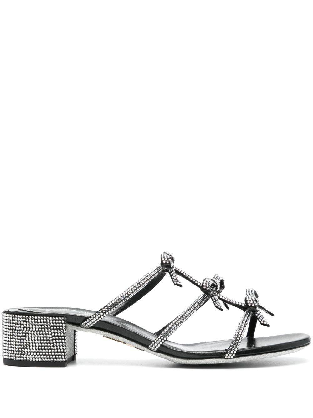 35mm Caterina sandals Highlights - Black - Satin weave - Caged design - Rhinestone embellishment - Almond open toe - Bow detailing - Branded leather insole - 35mm mid block heel - Rubber sole with glitter detailing - Slip-on style Made in Italy Composition Lining: Calf Leather 100% Sole: Glitter 100%, Calf Leather 100% Outer: Satin 100%, glass 100% SIZE & FIT Measurement HEEL 1.57 in(4 cm)