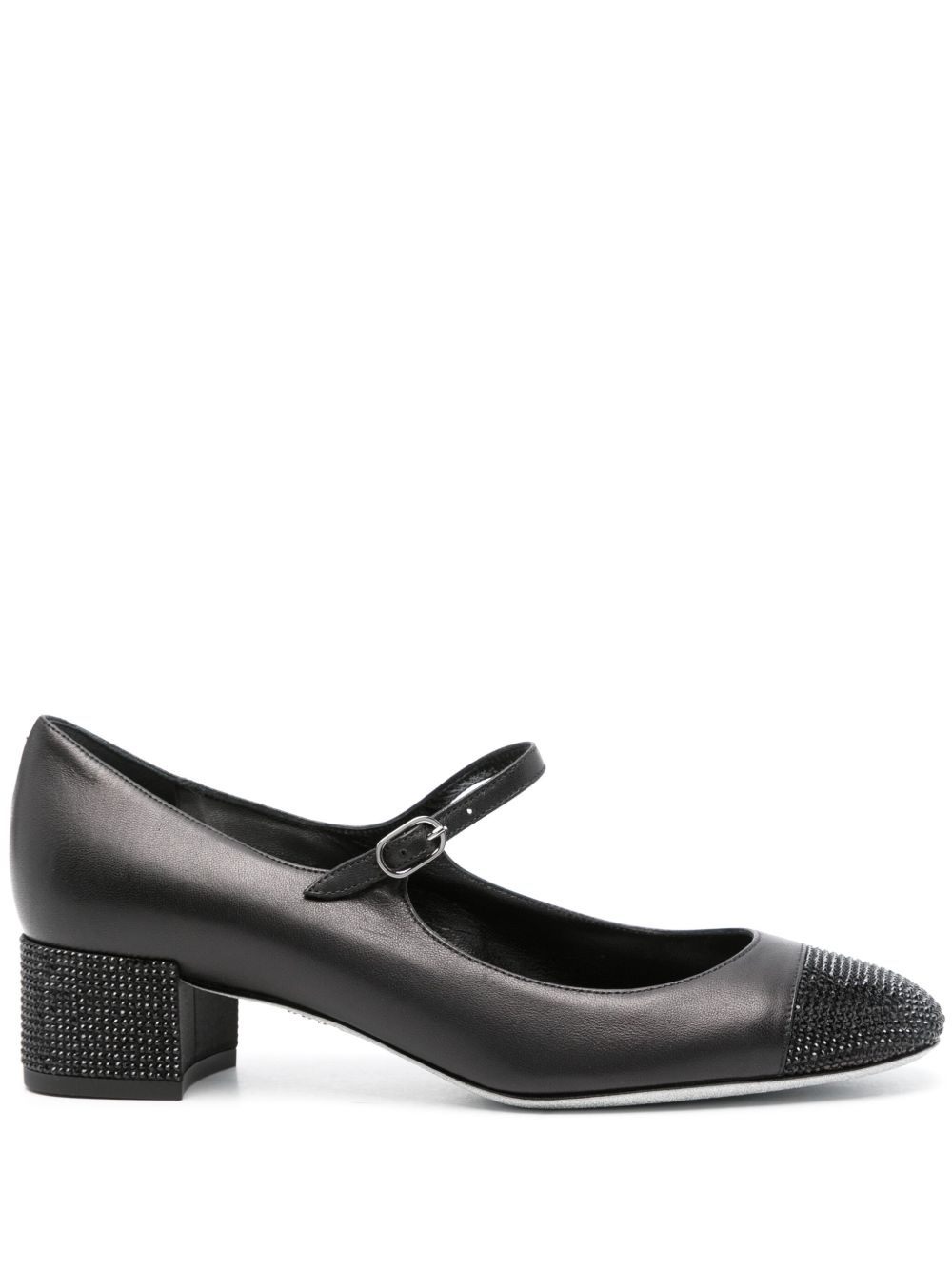 35mm Kristen pumps Highlights - Black - Calf leather - Rhinestone embellishment - Glitter detailing - Round toe - Buckle-strap fastening - Branded leather insole - Low block heel - Leather outsole - Silver-tone hardware - Leather sole Made in Italy Composition Sole: Calf Leather 100% Lining: Calf Leather 100% Outer: Calf Leather 100%, Fabric 100%, glass 100% SIZE & FIT Measurement HEEL 1.37 in(3.5 cm)