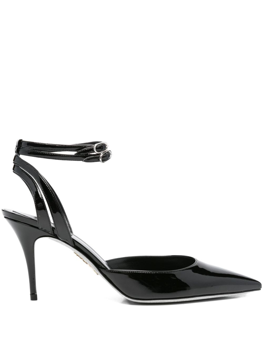 80mm leather heeled pumps Highlights - Black - Buckle-fastening ankle strap - Pointed toe Made in Italy Composition Outer: Patent Calf Leather 100% Sole: Glitter 100% Lining: Calf Leather 100% SIZE & FIT Measurement HEEL 3.34 in(8.5 cm)