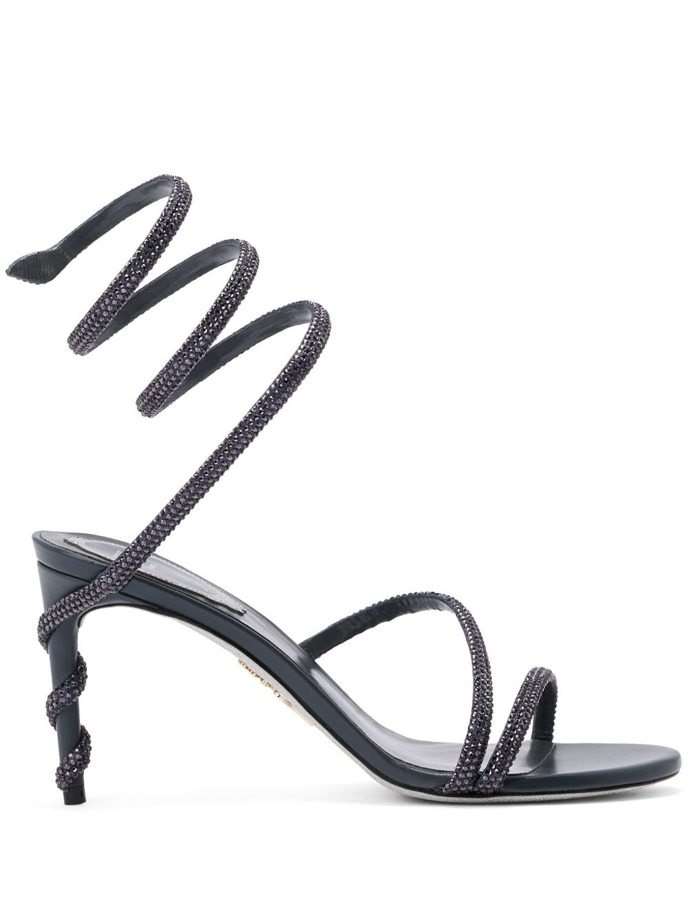 80mm Margot sandals Highlights - Grey - Leather - Crystal embellishment - Stiletto heel - Branded insole - Ankle strap Made in Italy Composition Sole: Calf Leather 100% Lining: Calf Leather 100% Outer: Satin 100% SIZE & FIT Measurement HEEL 3.14 in(8 cm)