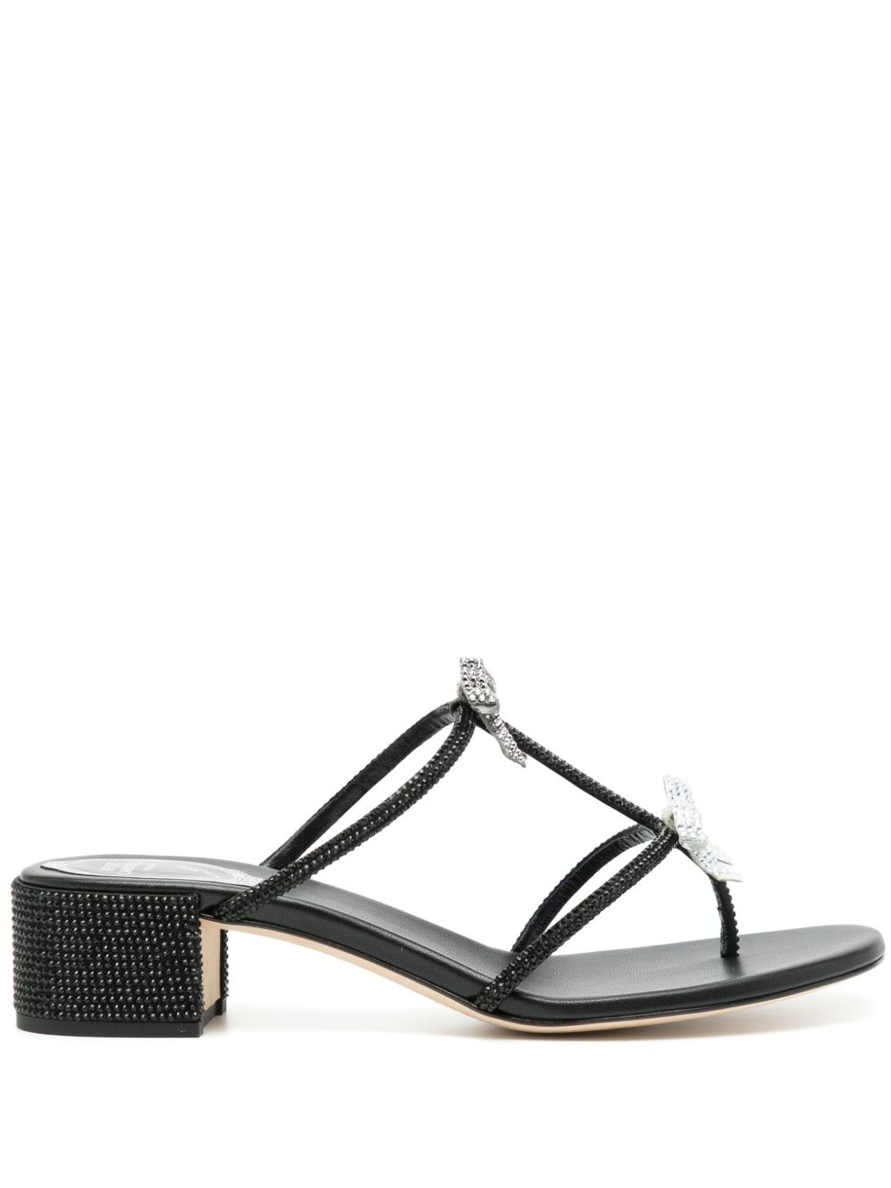 Caterina 40mm leather sandals Highlights - Black - Silk satin - Bow detailing - Crystal embellishment - Round open toe - Branded leather insole - Low block heel - Slip-on style Made in Italy Composition Silk 100% SIZE & FIT Measurement HEEL 1.57 in(4 cm)