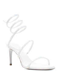 Cleo spiral-embellished sandals Highlights - Ivory - Calf leather - Crystal embellishment - Spiral ankle wrap - Stiletto heel - Open toe Made in Italy Composition Lining: Calf Leather 100% Sole: Glitter 100% Outer: Calf Leather 100% SIZE & FIT Measurement HEEL 3.14 in(8 cm)