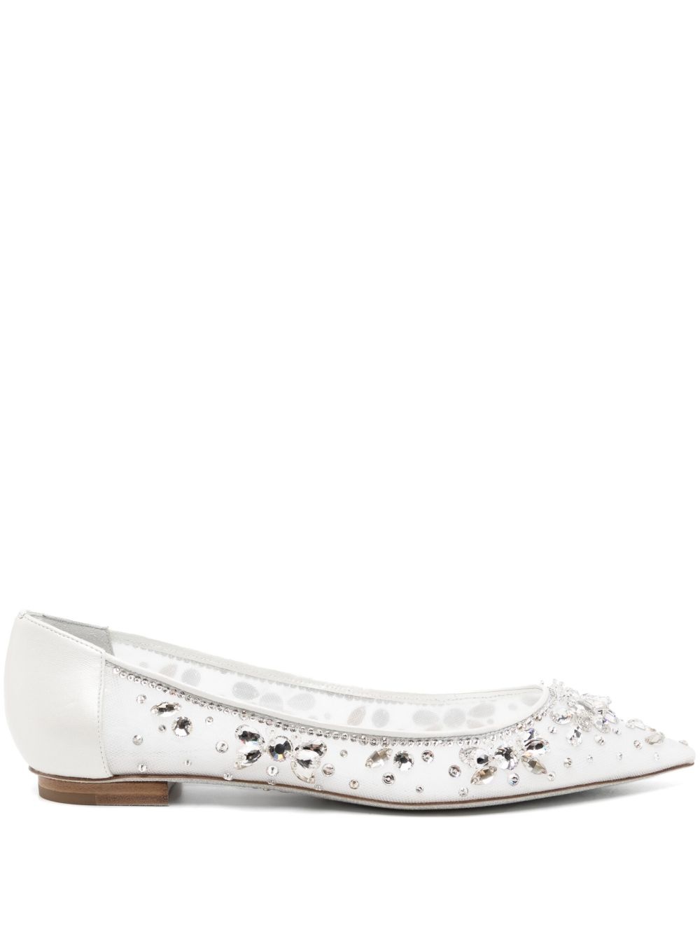 crystal-embellished lace ballerina shoes Highlights - White - Mesh panelling - Crystal embellishment - Pointed toe - Slip-on style - Branded leather insole - Flat leather sole Made in Italy Composition Lining: Calf Leather 100% Sole: Calf Leather 100% Outer: Other fibres 100%