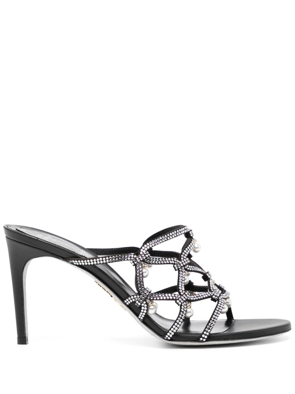 slip-on style sandals Highlights - Black - Round toe - Bead embellishment - Crystal embellishment - Slip-on style Made in Italy Composition Outer: Satin 100% Sole: Calf Leather 100% Lining: Leather 100% SIZE & FIT Measurement HEEL 3.54 in(9 cm)