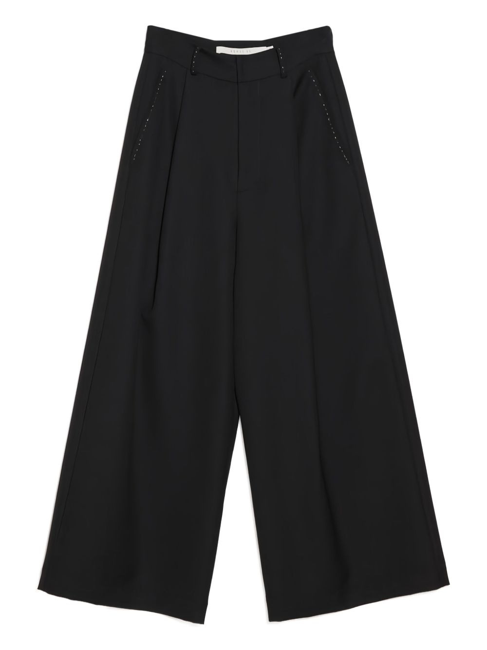 pleated wide-leg trousers Highlights - Black - Pleated front - Wide leg - Hook-and-bar fastening Imported Composition Wool 60%, Polyester 40% Washing instructions Read Manufacturer Guidelines