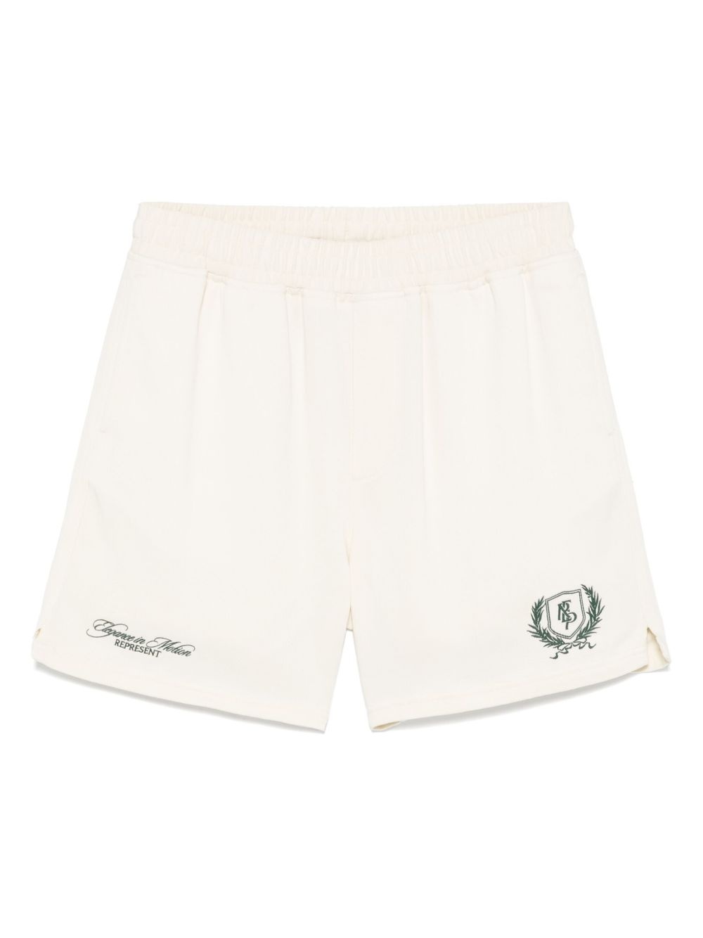 embroidered-logo shorts Highlights - Ecru - Elasticated drawstring waistband - Slip pockets to the sides - Short side slits - Two rear patch pockets Imported Composition Lining: Cotton 100% Outer: TENCEL™ 100% SIZE & FIT Model measurements Height 6 ft 1 in(1.86 m) Bust/Chest 37.4 in(95 cm) Hips 36.22 in(92 cm) Waist 29.52 in(75 cm) FittingInformation Designed for relaxed fit, offering a comfortable loose fit over the leg The elasticated waist allows for a comfortable fit Made from a midweight non-stretch fabric, this piece offers minimal elasticity when worn
