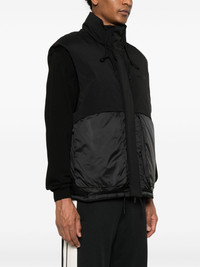 layered puffer gilet Highlights - Black - Down-feather filling - Padded design - Quilted - Front press-stud and zip fastening - Drawstring neck - High neck - Sleeveless - Rubberised logo detail - Two front flap pockets - Side zip fastening - Full lining - Internal zip-fastening pocket - Internal drawstring fastening waist - Straight hem Imported Composition Outer: Polyester 100%, Nylon 95%, Elastane 5% Lining: Nylon 100%, Duck Down 90%, Feather 10% SIZE & FIT Model measurements Height 6 ft 2 in(1.87 m) Bust/Chest 36.22 in(92 cm) Hips 37 in(94 cm) Waist 27.95 in(71 cm) FittingInformation Designed to be unstructured, offering a loose fit throughout Made from a padded non-stretch fabric, giving it no natural elasticity