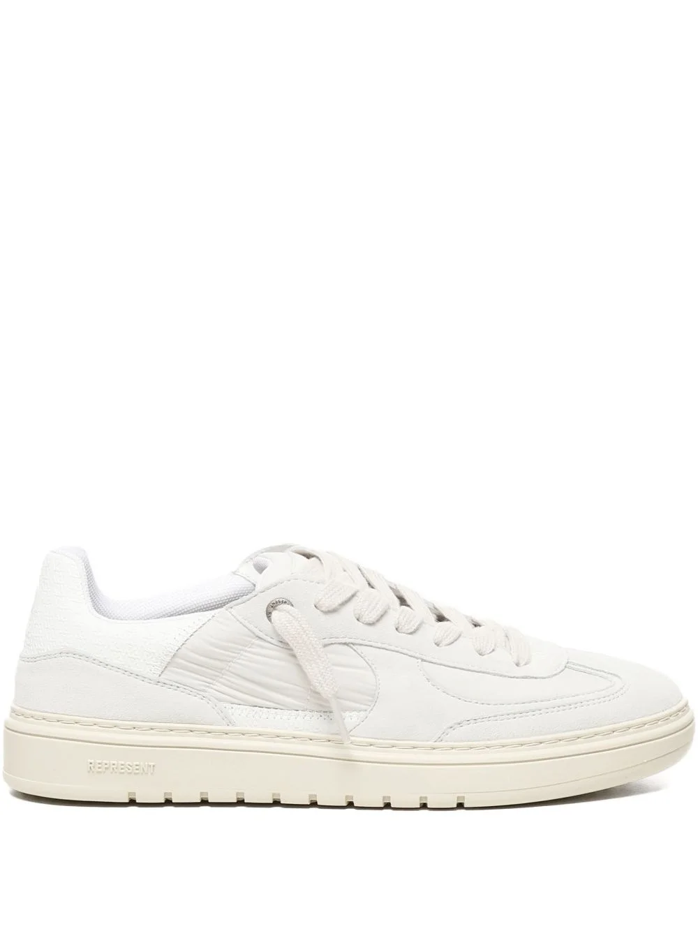 leather-panelled sneakers Highlights - White - Front lace-up fastening - Round toe - Flat rubber sole - Embossed logo to the side Imported Composition Outer: CALFSKIN 100% Lining: Fabric 100% Sole: Rubber 100%