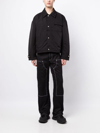 long-sleeve shirt jacket Represent's shirt jacket features a classic collar and belted cuffs. It's finished with a flap pocket at the chest. Highlights - Black - Classic collar - Front button and zip fastening - Long sleeves - Belted cuffs - Chest flap pocket Imported Composition Outer: Nylon 100% Lining: Nylon 100% SIZE & FIT Model measurements Height 6 ft 2 in(1.89 m) Bust/Chest 37.4 in(95 cm) Hips 36.61 in(93 cm) Waist 28.34 in(72 cm) FittingInformation Designed to be unstructured, offering a loose fit throughout Made from a padded non-stretch fabric, giving it no natural elasticity This piece fits true to size – take your usual size Washing instructions Machine Wash