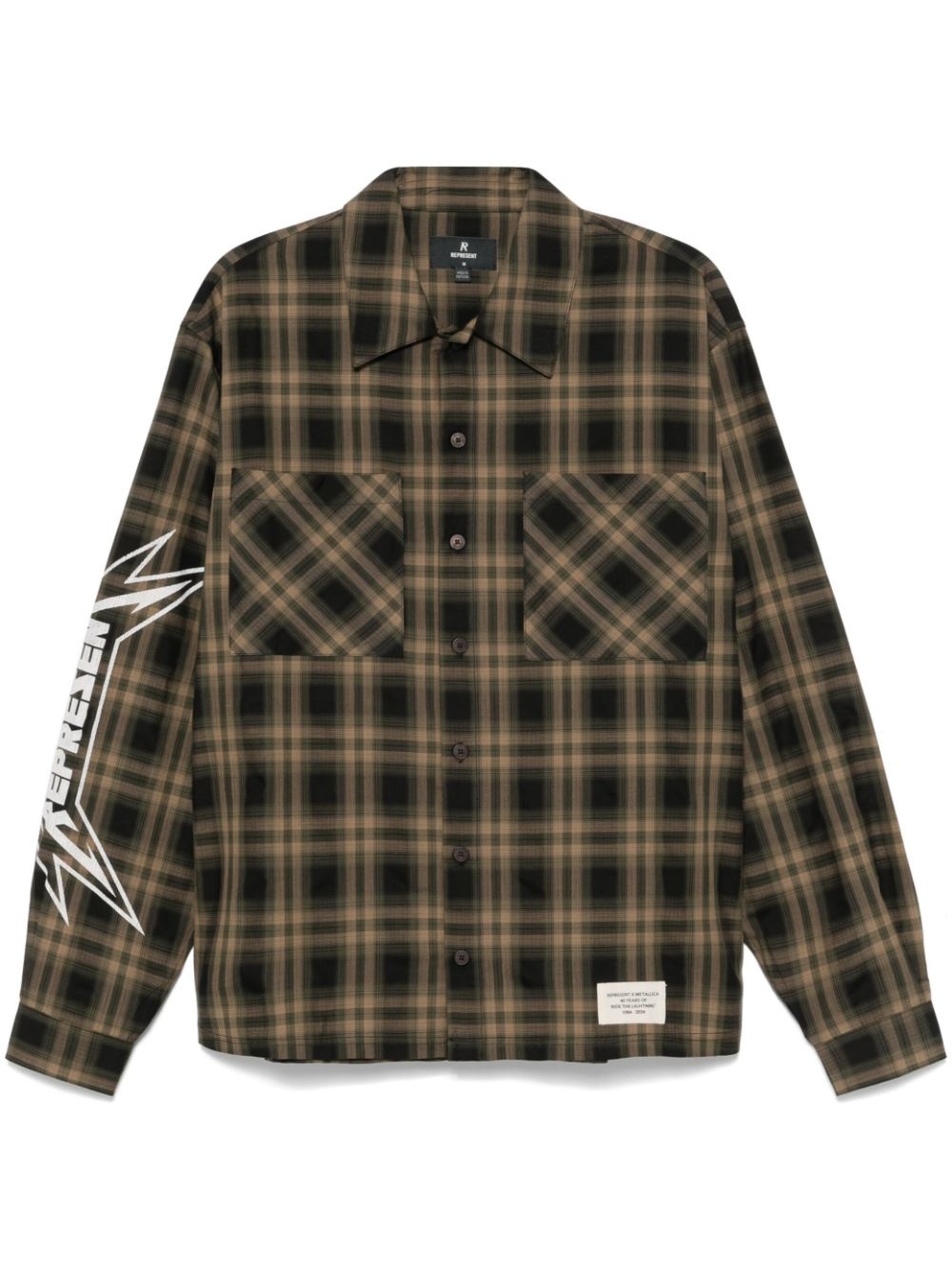 Metallica shirt Highlights - Tobacco brown - Front button fastening - Buttoned cuffs - Two chest patch pockets - Spread collar Imported Composition Cotton 59%, Lyocell 41% SIZE & FIT Model measurements Height 6 ft 2 in(1.87 m) Bust/Chest 37.79 in(96 cm) Hips 37.79 in(96 cm) Waist 30.31 in(77 cm) FittingInformation Designed to be unstructured, offering a loose fit throughout Made from a midweight non-stretch fabric