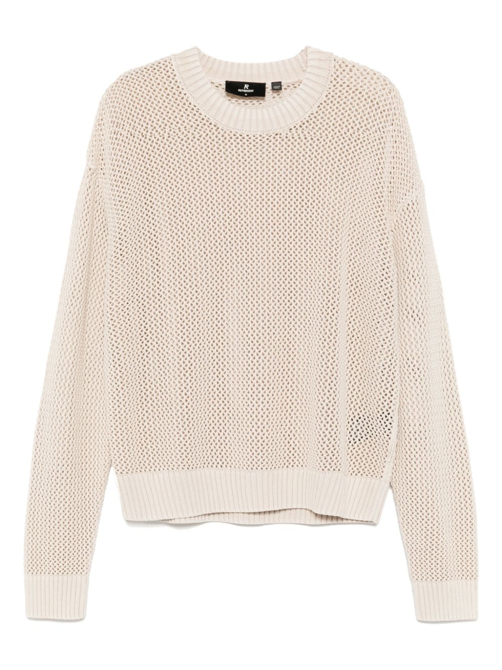 open gauge knit jumper Highlights - Off-white - Crew neck - Ribbed cuffs and hem - Semi-sheer construction Imported Composition Cotton 100% SIZE & FIT Model measurements Height 6 ft 2 in(1.88 m) Bust/Chest 34.25 in(87 cm) Hips 34.64 in(88 cm) Waist 26.77 in(68 cm) FittingInformation Designed to be unstructured, offering a loose fit throughout The ribbed hem offers a close, comfortable fit Made with a midweight knit, this piece offers some stretch