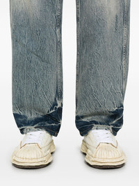 R3 distressed jeans Highlights - Imperial blue - Concealed fly and button fastening - Belt loops - Classic five pockets - Embroidered logo to the rear Imported Composition Cotton 100% SIZE & FIT Model measurements Height 6 ft 2 in(1.89 m) Bust/Chest 36.22 in(92 cm) Hips 37.79 in(96 cm) Waist 29.52 in(75 cm) FittingInformation Designed for a tapered leg, these jeans allow a loose unrestricted fit over the leg with a closer fit towards the ankle Sturdy and hard-wearing, this denim piece offers no stretch