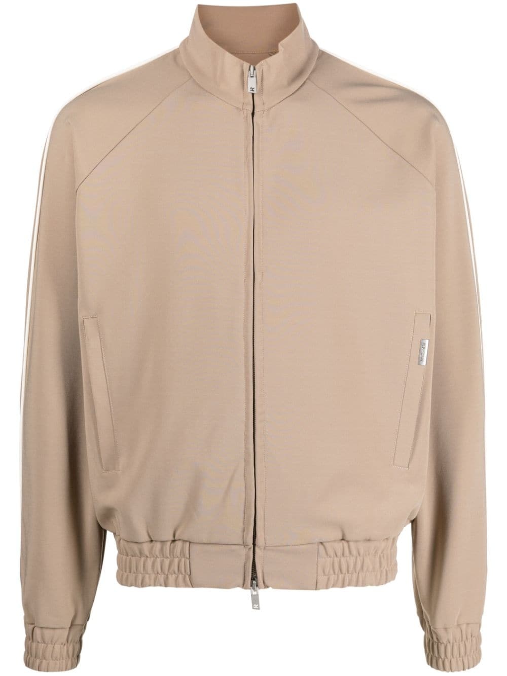 zip-up sweatshirt Highlights - Sesame beige - Logo plaque - Piped-trim detailing - Stand-up collar - Front zip fastening - Long sleeves - Elasticated cuffs - Elasticated hem - Two side welt pockets Imported Composition Viscose 80%, Polyamide 14%, Spandex/Elastane 6% SIZE & FIT Model measurements Height 6 ft 0 in(1.84 m) Bust/Chest 35.82 in(91 cm) Hips 37 in(94 cm) Waist 28.34 in(72 cm) FittingInformation Designed for a relaxed fit, this piece allows for comfort and movement when worn Made from a midweight stretch fabric, this piece offers elasticity and flexibility when worn This piece fits true to size – take your usual size Washing instructions Machine Wash