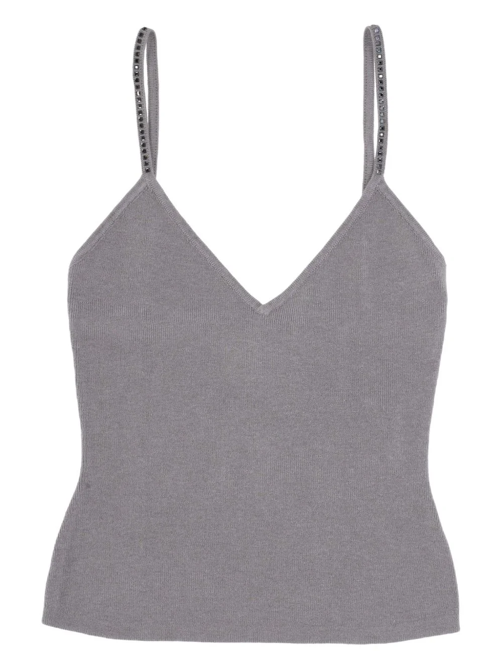 Cassia top Highlights - Grey - Rhinestone embellishment - V-neck - Ribbed knit Imported Composition Nylon 54%, Polyester 20%, Modacrylic 16%, Wool 10% Washing instructions Read Manufacturer Guidelines