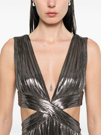Dracey maxi dress Highlights - Gunmetal grey - Rear button fastening - Concealed rear hook and zip fastening - Fully pleated - Plunging v-neck Imported Composition Outer: Polyester 95%, Spandex/Elastane 5% Lining: Polyester 95%, Spandex/Elastane 5% SIZE & FIT Model measurements Height 5 ft 10 in(1.78 m) Bust/Chest 33.46 in(85 cm) Hips 36.22 in(92 cm) Waist 23.22 in(59 cm) FittingInformation Designed for a close fit at the chest and waist with a loose fit at the hip Made from a midweight stretch fabric, this piece offers elasticity and flexibility when worn