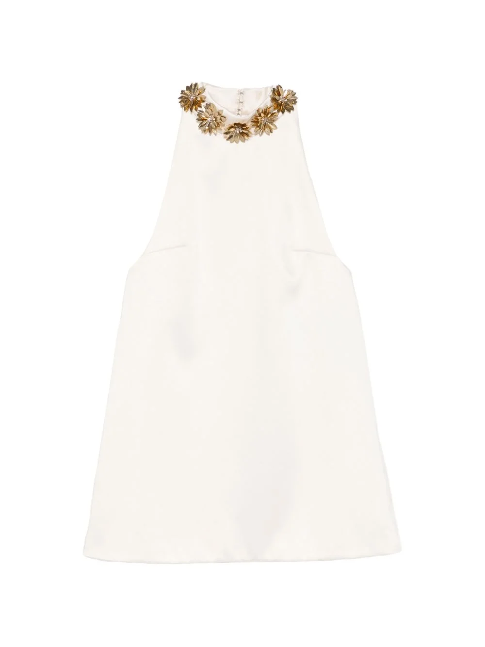 Giacinta flower-embellishment mini dress Highlights - White - Flower embellishment - Halter neck - Sleeveless - Zip fastening Imported Composition Outer: Polyester 85%, Viscose 15% Lining: Polyester 95%, Lycra 5% Washing instructions Do Not Wash/Do Not Dry Clean