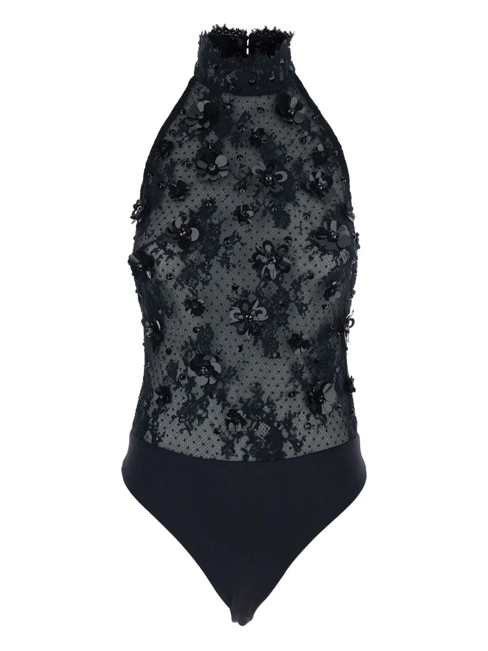 halterneck floral embroidered bodysuit Highlights - Black - Floral embroidery - Sheer - Open rear - Sleeveless - Rear closure - Just a reminder that this piece must be tried on over your own garments. Imported Composition Nylon 100% Washing instructions Read Manufacturer Guidelines