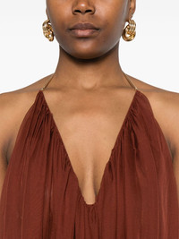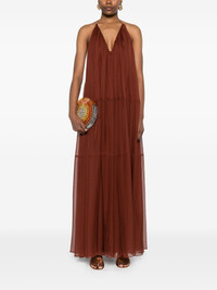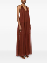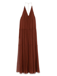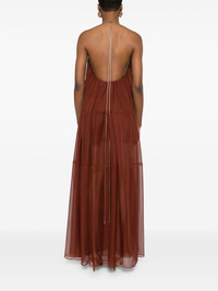 jersey maxi dress Highlights - Orange - Halterneck - Open back - Sleeveless - Rear tie fastening Imported Composition Polyester 100% SIZE & FIT Model measurements Height 5 ft 11 in(1.8 m) Bust/Chest 31.49 in(80 cm) Hips 36.61 in(93 cm) Waist 24.4 in(62 cm) FittingInformation Designed to be fitted across the shoulders, becoming looser as it falls Made from a midweight non-stretch fabric Washing instructions Dry Clean Only