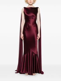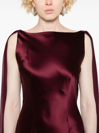 Julia gown Highlights - Plum purple - Silk blend - Satin finish - Concealed rear zip fastening - Boat neck - Scarf detailing - Sleeveless - Open back - Mermaid silhouette - Floor-length Imported Composition Outer: Silk 95%, Acetate 76%, Polyester 24%, Spandex/Elastane 5% Lining: Acetate 76%, Polyester 24% SIZE & FIT Model measurements Height 5 ft 9 in(1.75 m) Bust/Chest 34.64 in(88 cm) Hips 36.61 in(93 cm) Waist 26.37 in(67 cm) FittingInformation Designed for a close fit throughout The dart stitching adds structure and a closer fit in the torso of this piece Made from a midweight non-stretch fabric Washing instructions Do Not Wash/Do Not Dry Clean