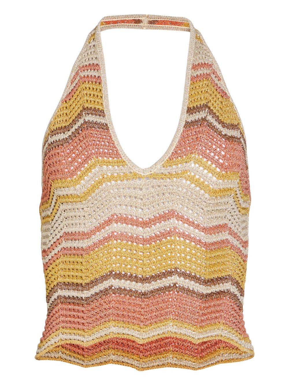 Luz crochet halterneck top Highlights - Yellow - Chevron pattern - Halterneck - Crochet knit - Sleeveless Imported Composition Polyester 70%, Rayon 30% Washing instructions Read Manufacturer Guidelines