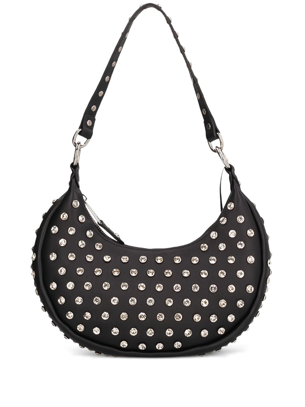 Maybelle crystal-embellished shoulder bag Highlights - Black - Leather - Crescent shape - Crystal embellishments - Top handle - Zip fastening - This piece comes complete with a protective dust bag. Imported Composition Leather 100% SIZE & FIT Measurement HEIGHT 8.25 in(20.9 cm) WIDTH 10.5 in(26.6 cm)