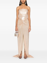 Maytal gown Highlights - Gold-tone - Concealed rear hook and zip fastening - Front slit - Ruched detailing - Twist detailing Imported Composition Lining: Polyester 95%, Spandex/Elastane 5% Outer: Polyester 92%, Spandex/Elastane 8% SIZE & FIT Model measurements Height 5 ft 9 in(1.76 m) Bust/Chest 31.1 in(79 cm) Hips 36.61 in(93 cm) Waist 24.8 in(63 cm) FittingInformation Designed for a close fit throughout Made from a midweight stretch fabric, this piece offers elasticity and flexibility when worn