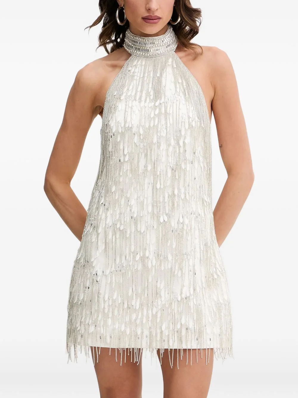 Tori halter-neck embellished mini dress Highlights - White - Embellishments - Open back - Halterneck - Sleeveless - Mini length Imported Composition Polyester 95%, Lycra 5% Washing instructions Read Manufacturer Guidelines