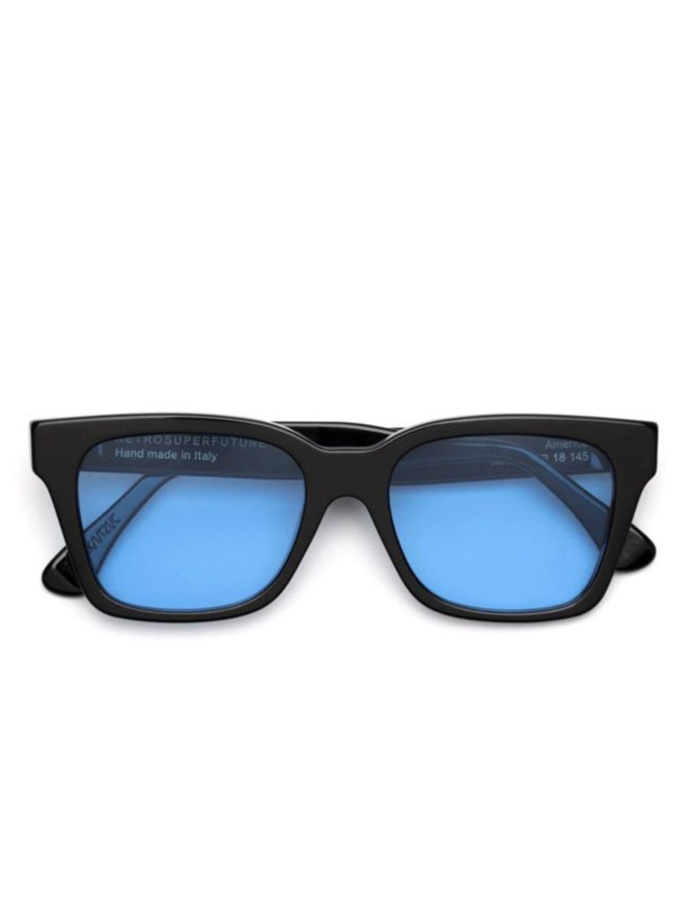 America sunglasses Highlights - Black - Logo print at the arm - Square frame - Curved tips - These glasses come with a protective case. Made in Italy Composition Acetate 100% SIZE & FIT Measurement Arm Length 5.7 in(14.5 cm) Bridge Width 0.7 in(1.8 cm) Lens Diameter 2.04 in(5.2 cm)