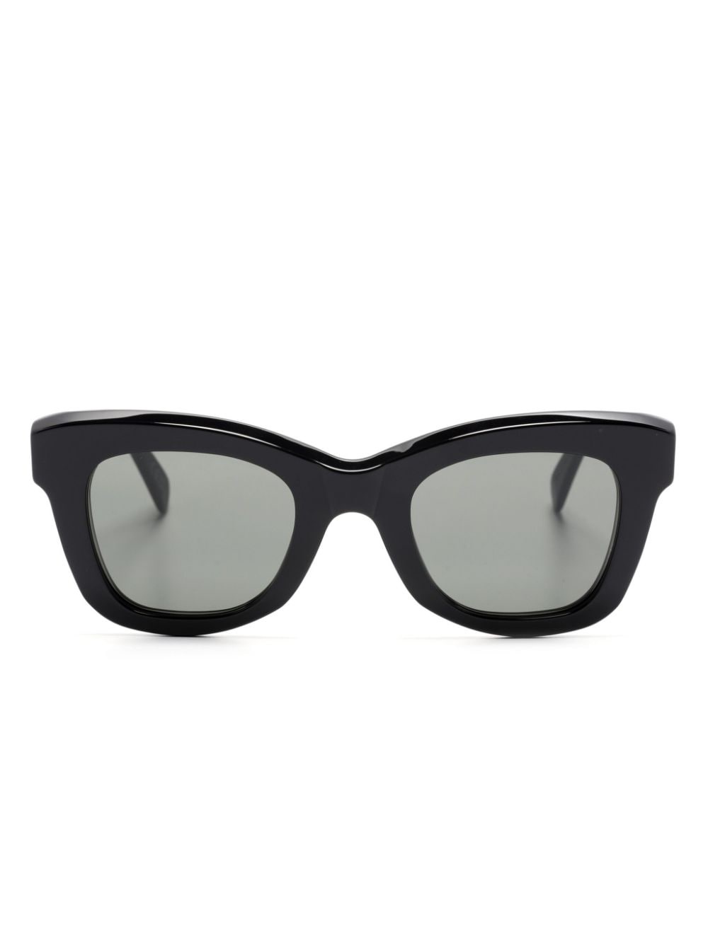 butterfly-frame sunglasses Highlights - Black - Acetate - Butterfly frame - Grey tinted lenses - Logo print at the arm - Straight arms with curved tips - These glasses come with a protective case. Made in Italy Composition Acetate 100% SIZE & FIT Measurement Arm Length 5.7 in(14.5 cm) Bridge Width 0.98 in(2.5 cm) Lens Diameter 1.96 in(5 cm) Total Width 5.7 in(14.5 cm)
