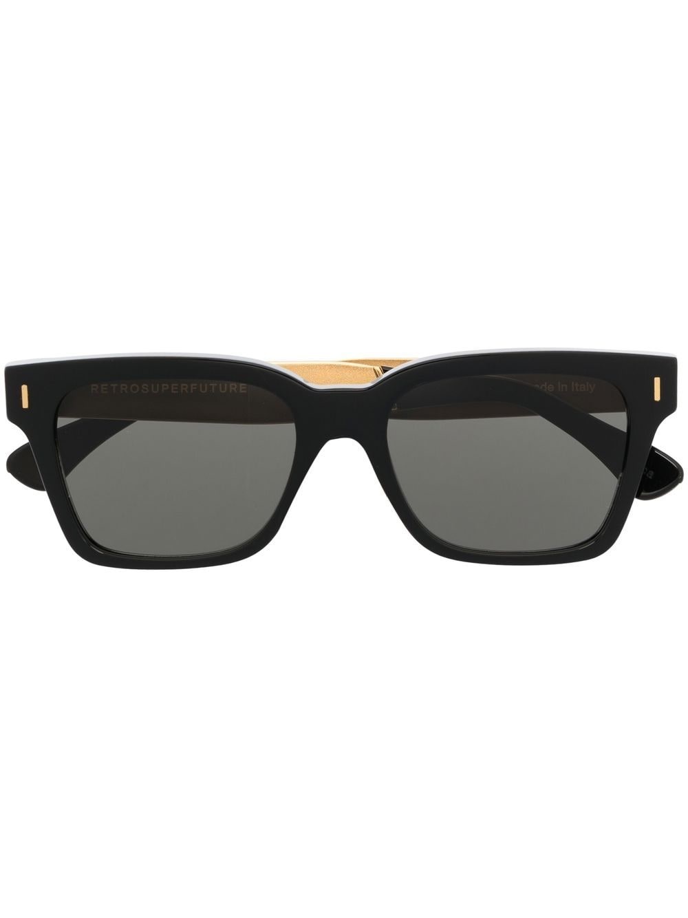 Francis square-frame sunglasses black acetate square frame tinted lenses straight arms curved tips These glasses come with a protective case. Made in Italy Composition Acetate 100% SIZE & FIT Measurement Arm Length 5.7 in(14.5 cm) Bridge Width 0.47 in(1.2 cm) Lens Diameter 2 in(5.1 cm) Total Width 5.51 in(14 cm)