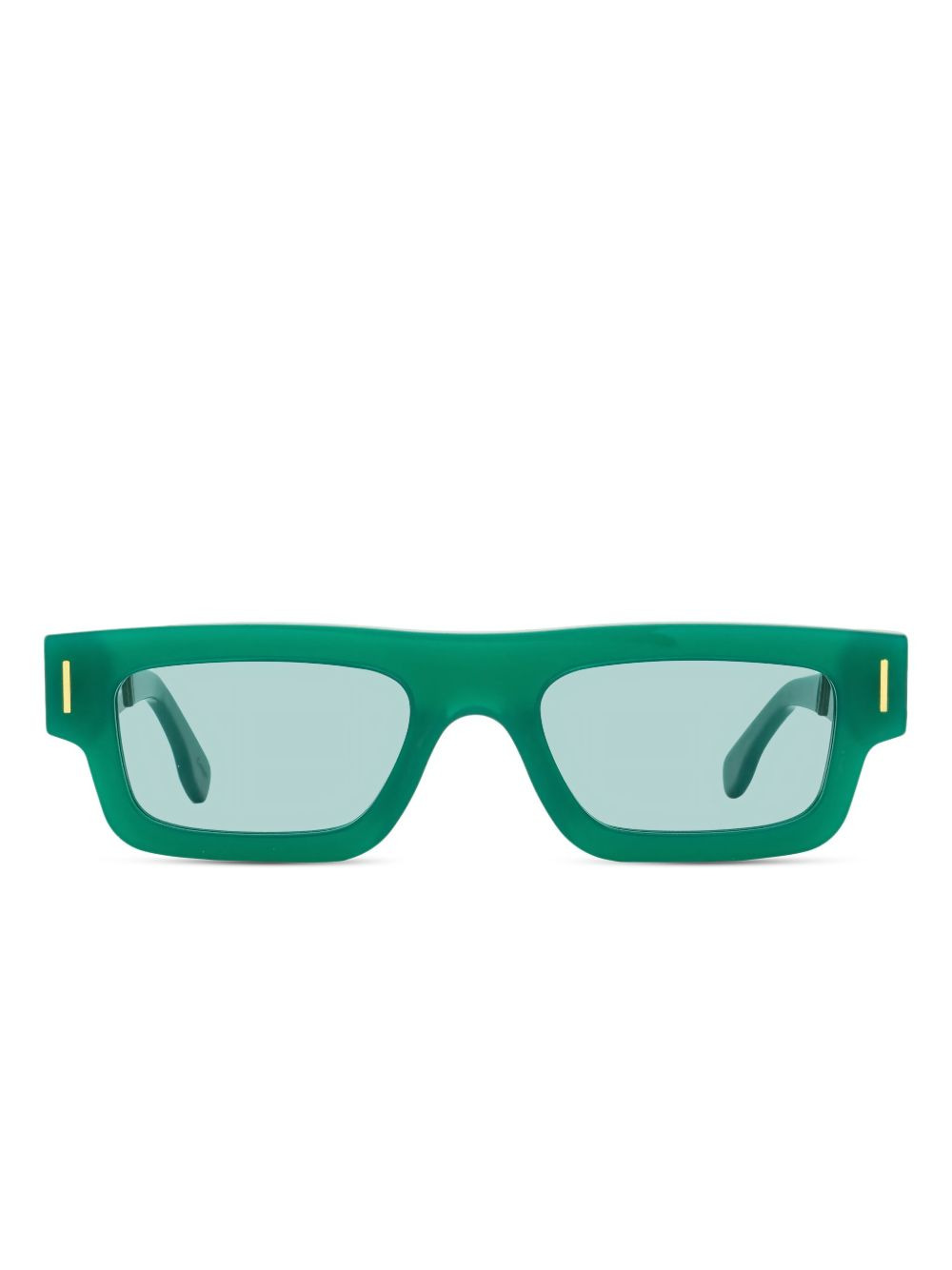 low-profile rectangular sunglasses Highlights - Green - Rectangular frame - Metal temples - Acetate frames - Low profile - Engraved branding - These glasses come with a protective case. Made in Italy Composition Metal 100%, Acetate 100%, Nylon 100% SIZE & FIT Measurement Arm Length 57.08 in(145 cm) Bridge Width 11.41 in(29 cm) Lens Diameter 20.47 in(52 cm)