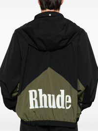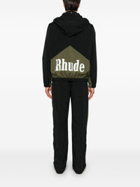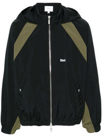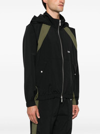 Aerial track jacket Highlights - Black/olive green - Colour-block panelled design - Front two-way zip fastening - Classic hood - Stand-up collar - Long raglan sleeves - Elasticated cuffs - Logo print at the chest - Front stud-fastening pocket - Unlined - Elasticated hem Made in United States Composition Polyester 100% SIZE & FIT Model measurements Height 6 ft 2 in(1.87 m) Bust/Chest 37.79 in(96 cm) Hips 37.79 in(96 cm) Waist 30.31 in(77 cm) Measurement CHEST 57.48 in(146 cm) LENGTH 26.77 in(68 cm) FittingInformation Designed to be unstructured, offering a loose fit throughout The elasticated hem allows for movement and a comfortable fit Made from a midweight non-stretch fabric Washing instructions Do Not Wash/Do Not Dry Clean