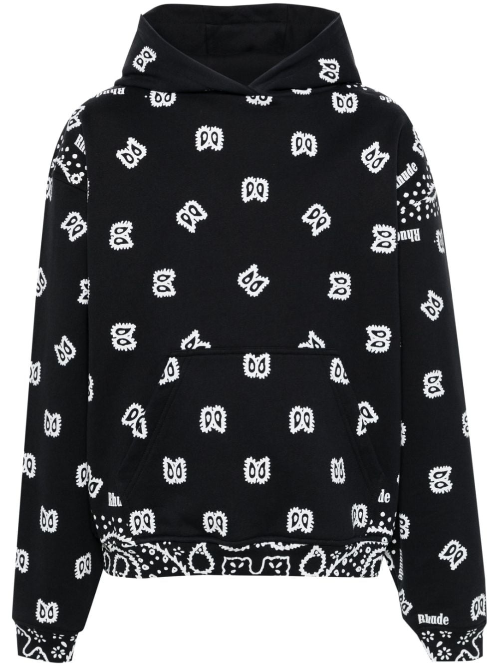 bandana-print hoodie Highlights - Black - Cotton - Jersey texture - All-over bandana print - Logo-print detail - Slouchy hood - Drop shoulder - Long sleeves - Front pouch pocket - Fleece lining - Ribbed cuffs and hem Made in Italy Composition Cotton 100% SIZE & FIT Model measurements Height 6 ft 2 in(1.87 m) Bust/Chest 36.41 in(92.5 cm) Hips 37 in(94 cm) Waist 29.52 in(75 cm) Measurement CHEST 44.88 in(114 cm) SLEEVE LENGTH 23.22 in(59 cm) LENGTH 23.22 in(59 cm) Shoulder Width 23.62 in(60 cm) FittingInformation Designed for a relaxed fit, this piece allows for comfort and movement when worn Made from a midweight non-stretch fabric, this piece offers minimal elasticity when worn This piece fits true to size – take your usual size