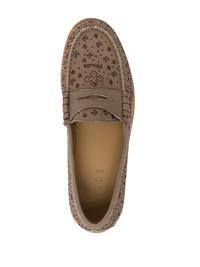 bandana-print low-heel loafers khaki beige bandana print penny slot round toe slip-on style branded insole low heel Made in Italy Composition Outer: Canvas 100%