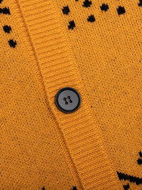 Bandana V-neck knit cardigan Highlights - Yellow - Black paisley-pattern - Button front - Ribbed cuffs and hem - Wool-cashmere blend Imported Composition Wool 70%, Cashmere 30% Washing instructions Read Manufacturer Guidelines