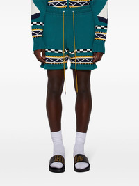 Bateau intarsia-knit shorts Highlights - Emerald green/cream white/navy blue - Wool-cotton blend - Patterned intarsia knit - Ribbed-knit edge - Stripe detailing - Mid-rise - Elasticated drawstring waistband - Two side slit pockets - Rear patch pocket - Thigh-length Imported Composition Cotton 50%, Wool 50%