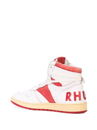 Bball Hi-top sneakers White and red leather Bball Hi-top sneakers from rhude featuring a brand embossed tongue, a round toe, a lace fastening, a flat rubber sole and a branded insole. Made in Italy Composition Outer: Calf Leather 100% Lining: Calf Leather 100% Sole: Rubber 100%
