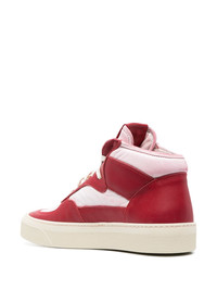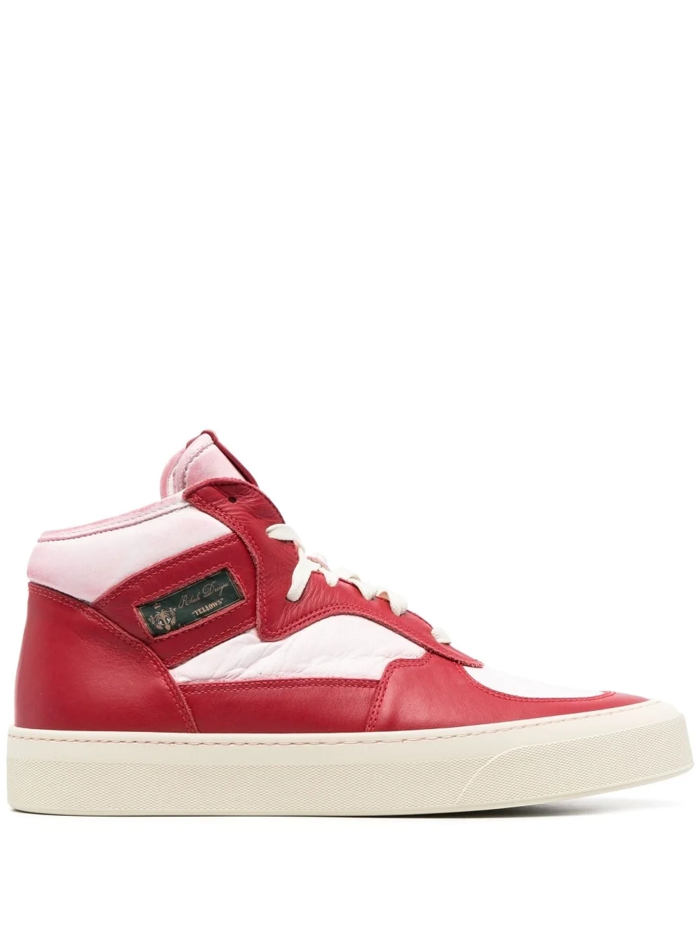 Cabriolets hi-top sneakers red/white calf leather panelled design faded effect logo patch to the side logo patch at the tongue round toe front lace-up fastening flat rubber sole Made in Italy Composition Outer: Calf Leather 100% Sole: Rubber 100% Lining: Calf Leather 100% SIZE & FIT Measurement HEIGHT 3.34 in(8.5 cm) Sole height 1.37 in(3.5 cm)