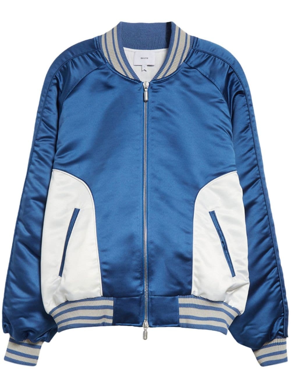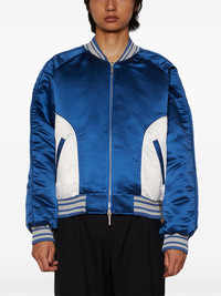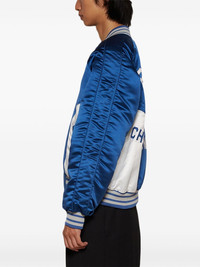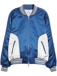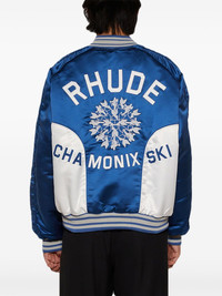 Chamonix ski souvenir bomber jacket Highlights - Blue/white - Satin finish - Front two-way zip fastening - Colour-block panelled design - Ribbed band collar - Two front welt pockets - Long sleeves - Ribbed cuffs and hem - Embroidered logo to the rear - Straight hem Imported Composition Lining: Lyocell 100% Outer: Polyester 100% Washing instructions Dry Clean Only