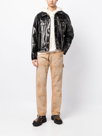 Chevron painter pants Rendered in a camel brown colourway, the Chevron painter pants from Rhude offer a utilitarian feel thanks to their chevron stitched double-knee design and hammer loop to the side. Highlights - Camel brown - Paint splatter detail - Chevron stitching - Concealed fly and button fastening - Belt loops - Two rear flap pockets - Hammer loop - Straight leg - Drawstring hem Made in United States Composition Polyester 65%, Cotton 35% SIZE & FIT Model measurements Height 6 ft 2 in(1.87 m) Bust/Chest 31.49 in(80 cm) Hips 37.79 in(96 cm) Waist 27.95 in(71 cm) FittingInformation Designed for a tapered leg, these jeans allow a loose unrestricted fit over the leg with a closer fit towards the ankle Sturdy and hard-wearing, this denim piece offers no stretch This piece fits true to size – take your usual size