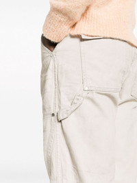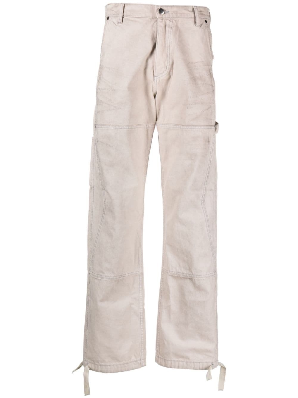 Chevron painter pants Rendered in a light beige colourway, the Chevron painter pants from Rhude offer a utilitarian feel thanks to their chevron stitched double-knee design and hammer loop to the side. Highlights - Light beige - Cotton - Chevron stitching - Concealed fly and button fastening - Belt loops - Two rear flap pockets - Hammer loop - Straight leg - Drawstring hem Made in United States Composition Outer: Cotton 100% Lining: Polyester 65%, Cotton 35% SIZE & FIT Model measurements Height 6 ft 2 in(1.87 m) Bust/Chest 36.41 in(92.5 cm) Hips 37 in(94 cm) Waist 29.52 in(75 cm) FittingInformation Designed with a straight leg, these jeans allow for an unrestricted and comfortable fit over the leg Sturdy and hard-wearing, this denim piece offers no stretch This piece fits true to size – take your usual size Washing instructions Dry Clean Only