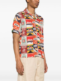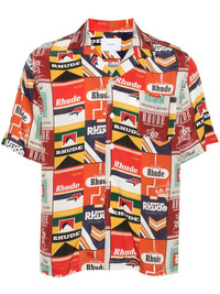 Cigarette-print silk shirt Nostalgic American iconography features across RHUDE's collections, and this red shirt is proof. Made from silk to a relaxed silhouette, it is saturated with a bold graphic print incorporating cigarette pack-inspired logo imagery. Highlights - Red/multicolour - Silk - All-over cigarette print - Notched lapels - Spread collar - Front button fastening - Short sleeves - Chest patch pocket - Straight hem Made in United States Composition Silk 100% SIZE & FIT Model measurements Height 6 ft 2 in(1.87 m) Bust/Chest 36.22 in(92 cm) Hips 37 in(94 cm) Waist 27.95 in(71 cm) FittingInformation Designed for a boxy fit, intended for a loose fit throughout Made from a lightweight non-stretch fabric This piece fits true to size – take your usual size Washing instructions Dry Clean Only